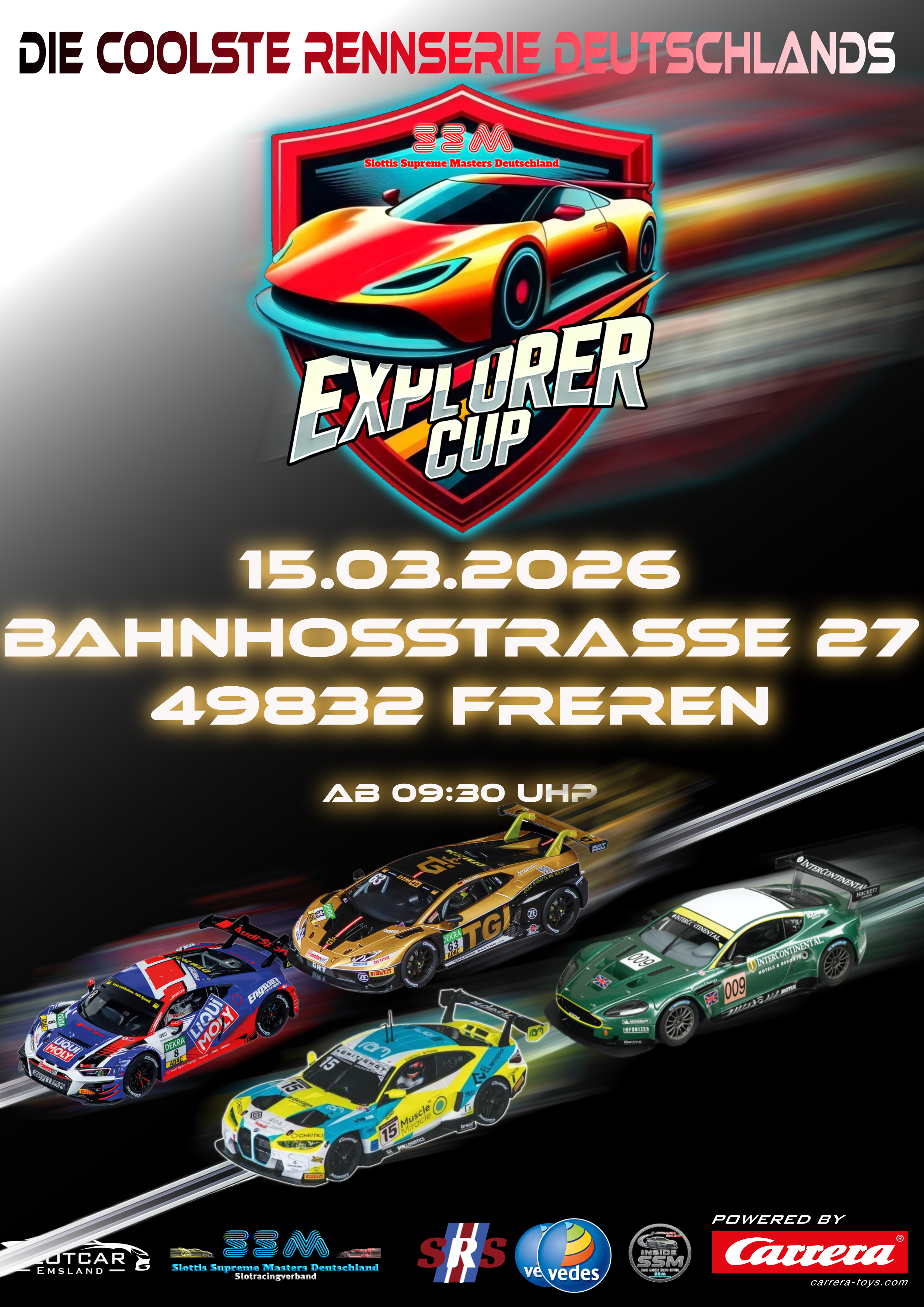 Komplett nach SSM Regelwerk, keine Poolmotoren aber SSM Motoren, gelb/schwarze PU Reifen